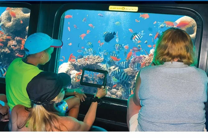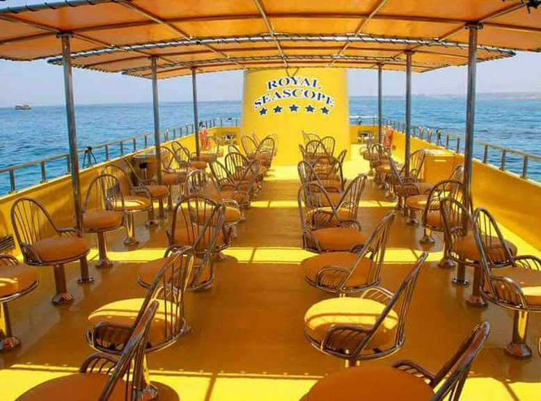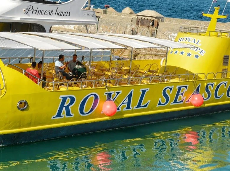 Discover the underwater wonders of the Red Sea on this cruise from Hurghada. Set sail on-board a semi-submarine with panoramic windows affording spectacular underwater views as you cruise along the coast. Then, dive in to swim and snorkel among vibrant corals, follow your guide along the reef, and look out for exotic fish and marine life. Fantastic underwater views from a semi-submarine Guided snorkelling excursion in the Red Sea Choice of departure times available throughout the day Hassle-free pickup and drop-off from your Hurghada hotel