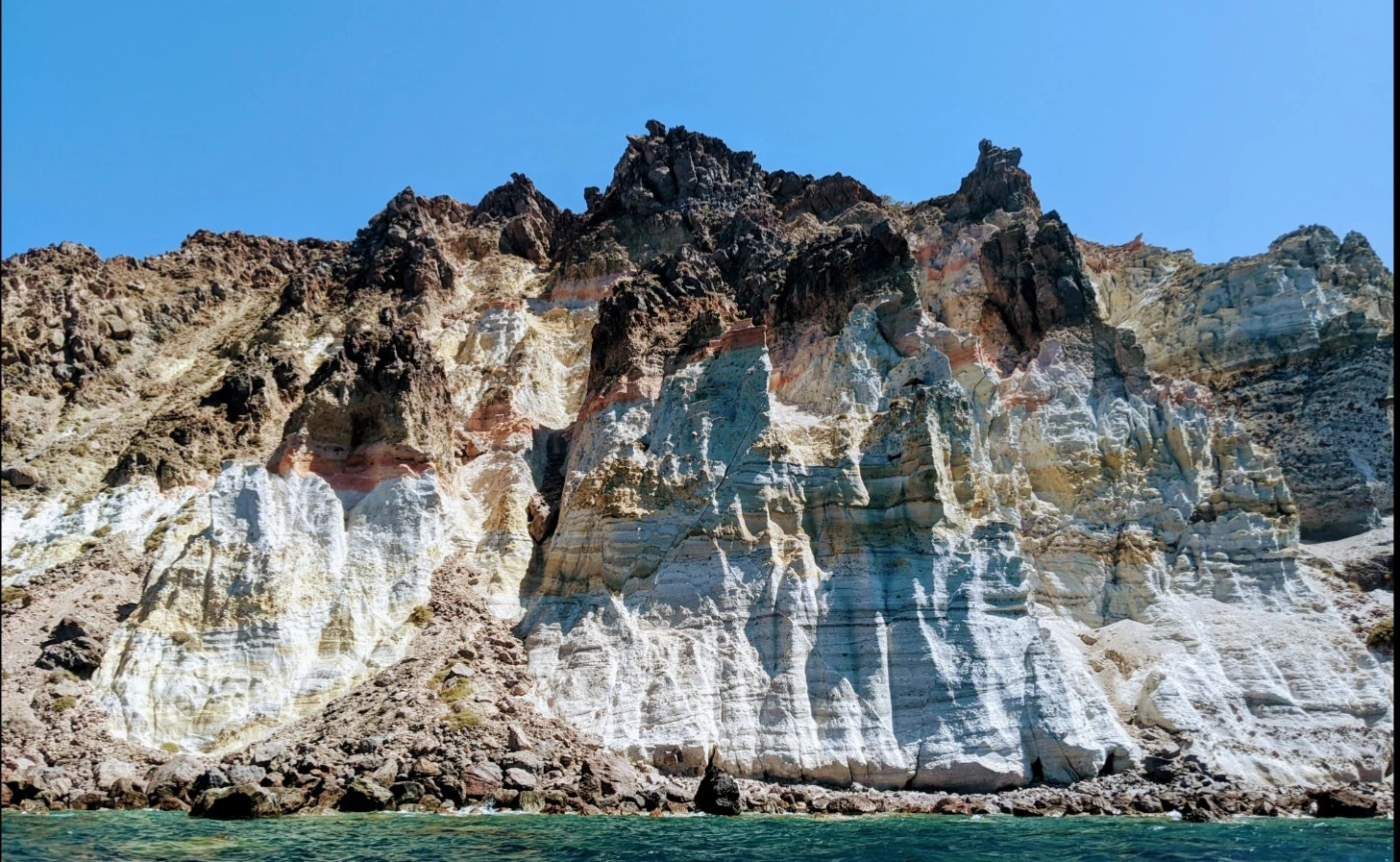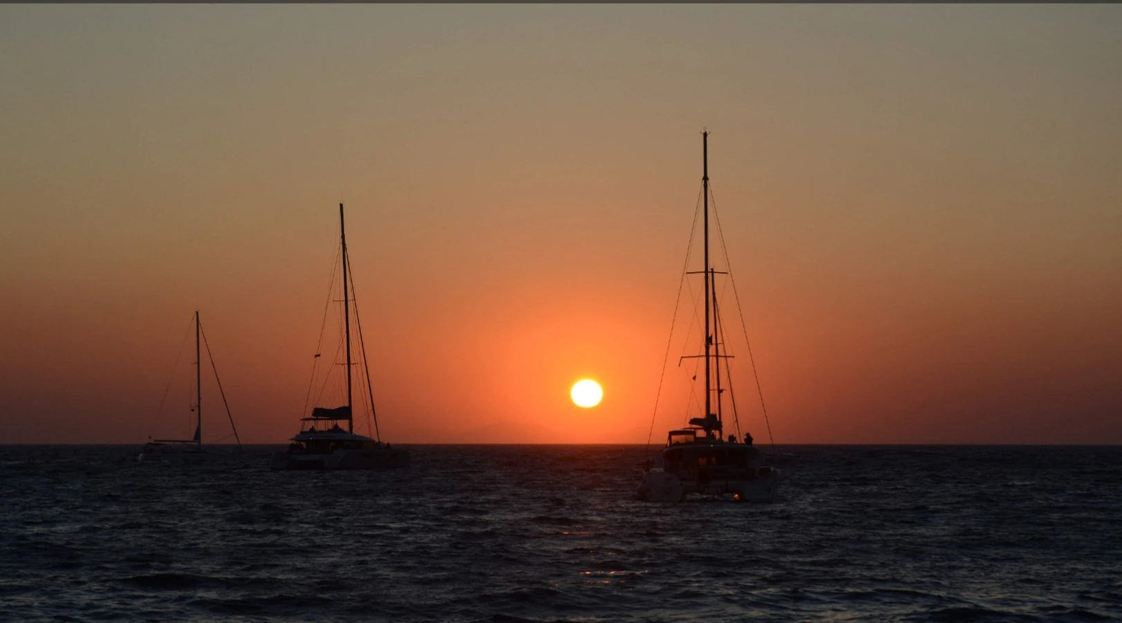 Setting sail from Vlychada Marina and cruising along the coastline, we arrive at Akrotiri’s Red Beach, admired for its distinct red hue, caused by the rich in volcanic minerals soil. Next, we sail towards the White Beach. Then we sail towards Mesa Pigadia for a swim break. Snorkeling gear and towels are provided to all our guests. Later, we pass the Lighthouse and enter the Caldera for a unique view of the whole bay. Our sailing route includes a close sail by the volcano crater and a full view of it. Our next stop is at the Hot Springs. This is where our second swim break takes place in the sulfurous waters that provide a natural spa. With the breathtaking views of Thirassia Island as a backdrop matching the picturesque Village of Oia, your Santorini Sailing experience shall culminate in the most unique and unforgettable way possible.